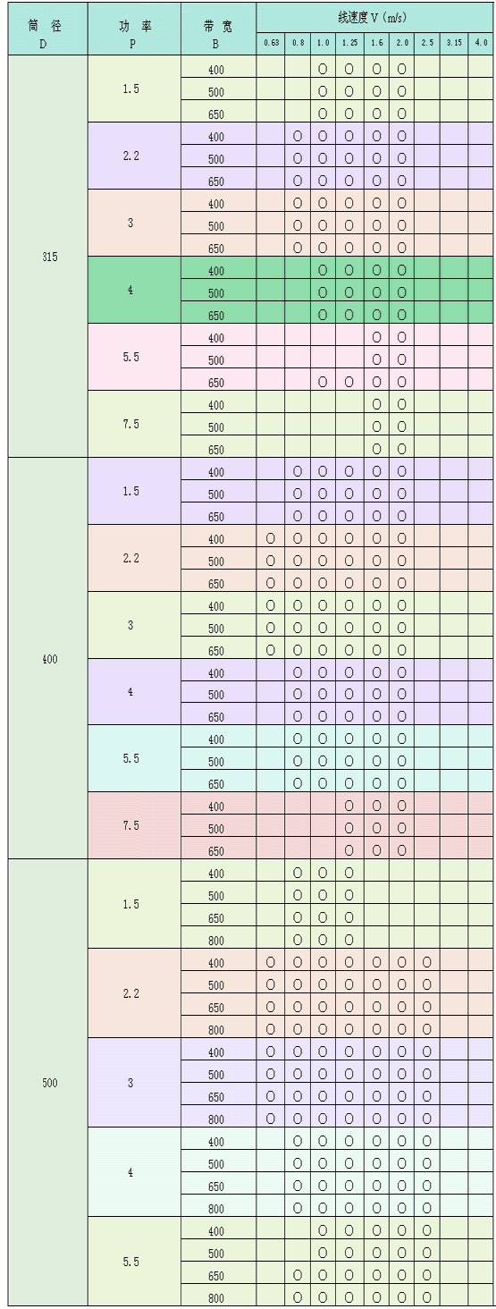 WD 型外裝式電動滾筒系列參數(shù)表: