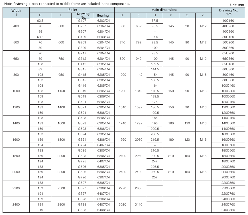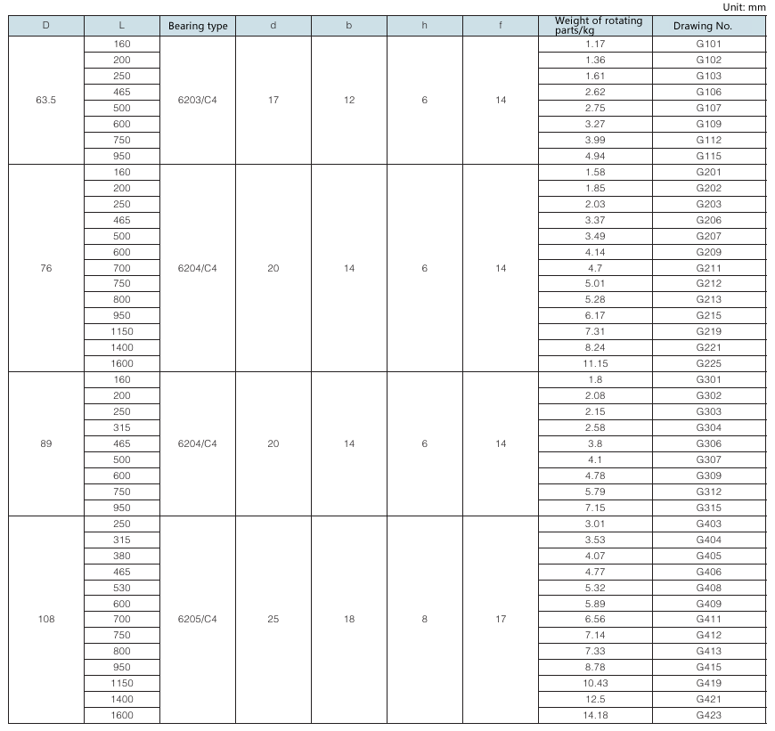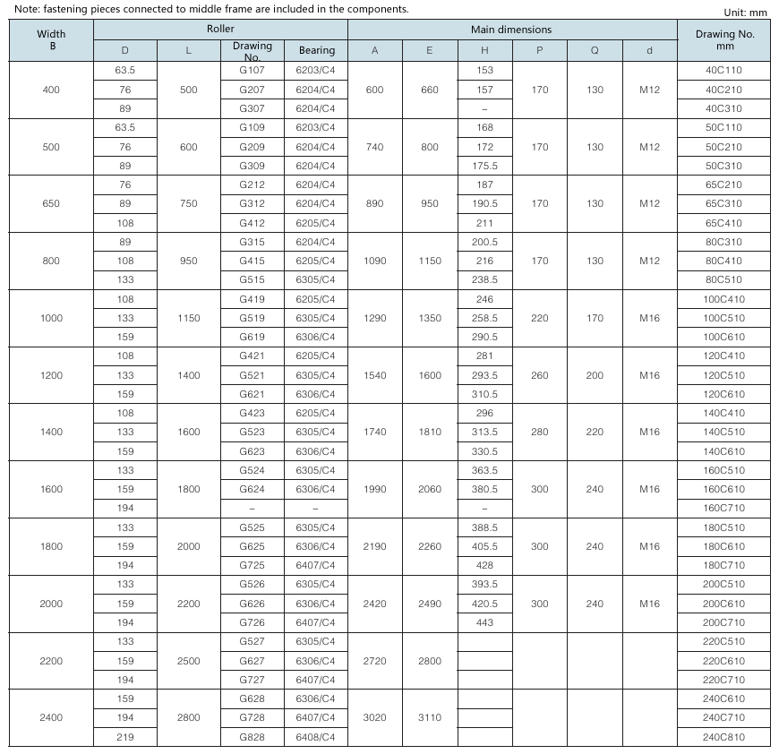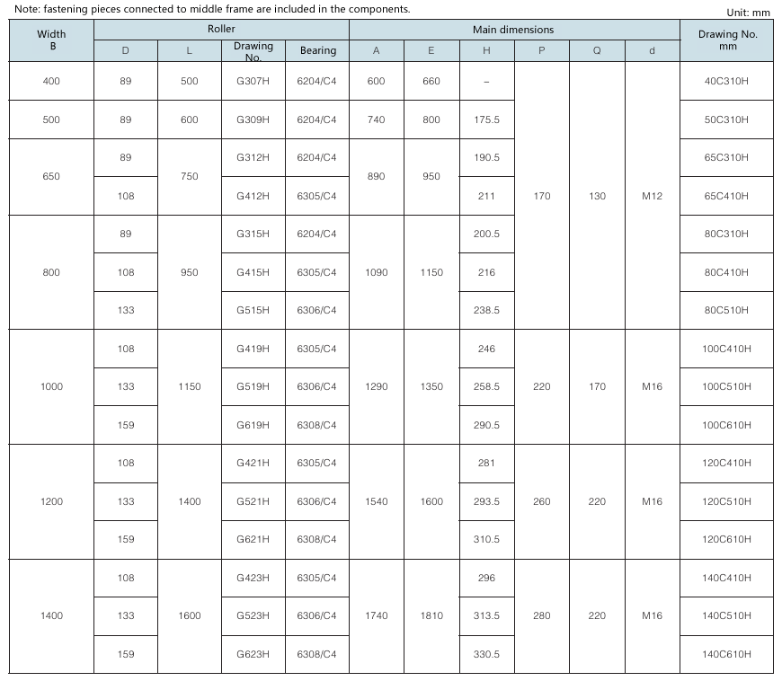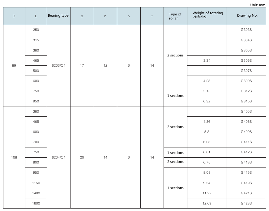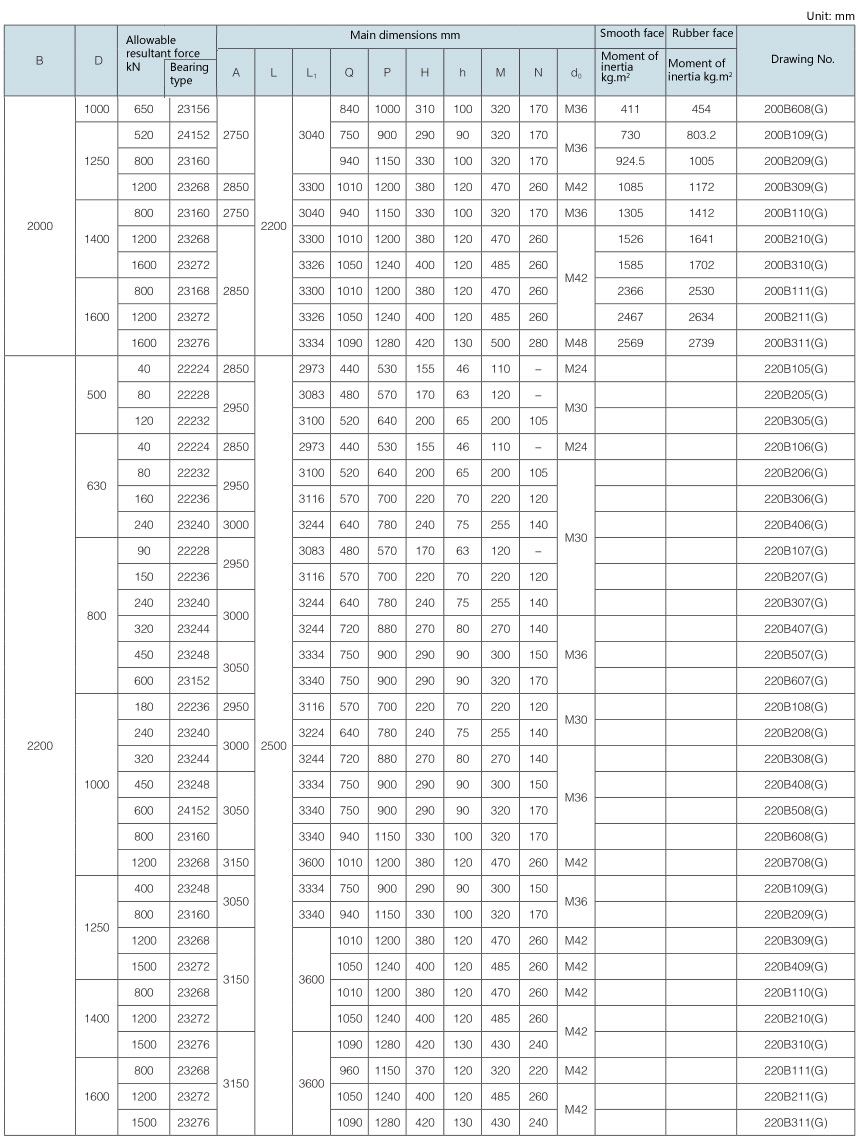 Requirement for drum surface: drawing No. with “G” as postfix refers to smooth face drum; drawing No. without “G” as postfix refers to rubber face drum.