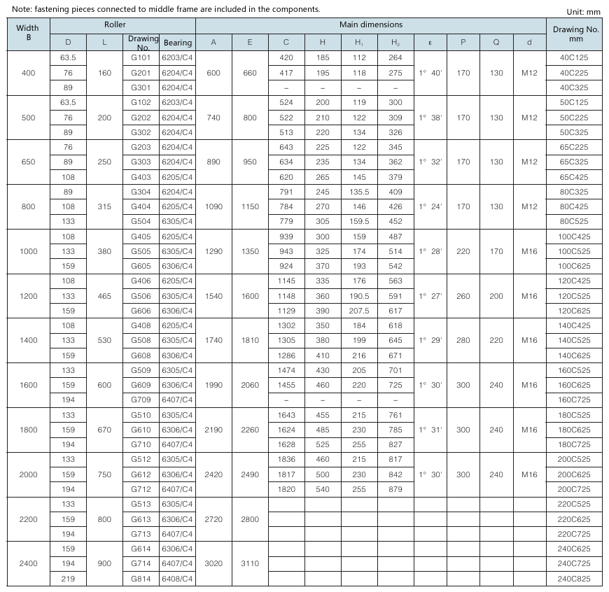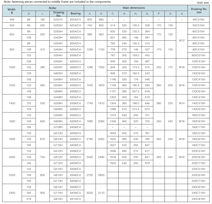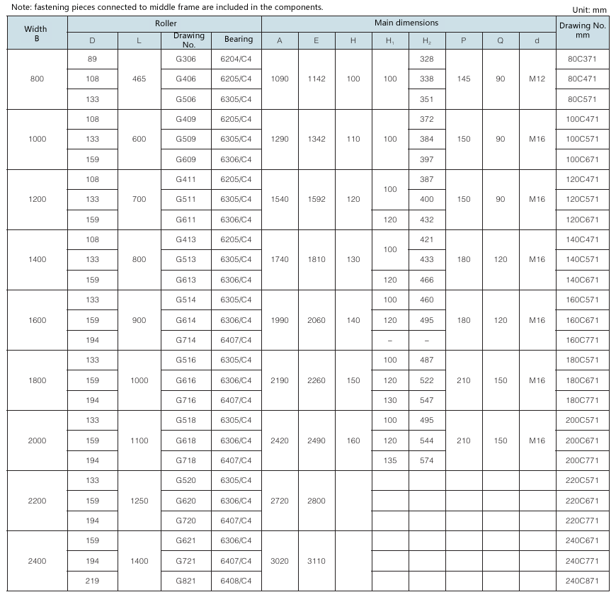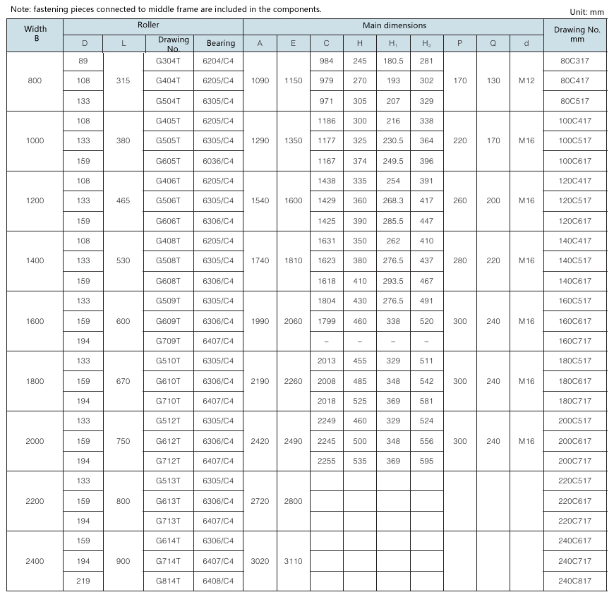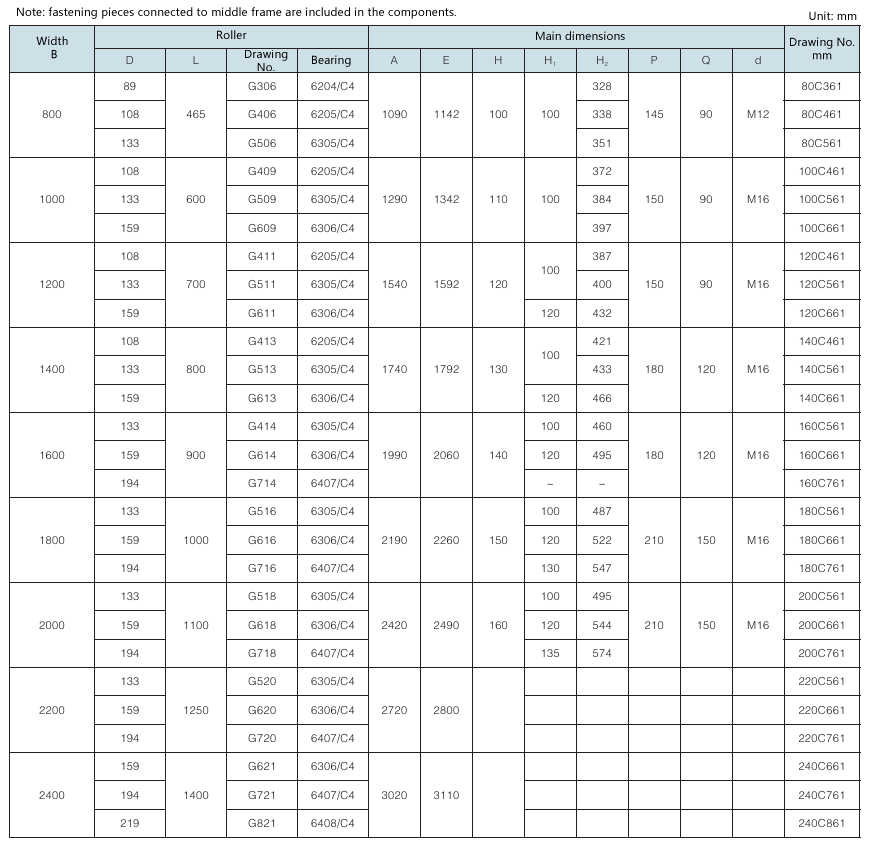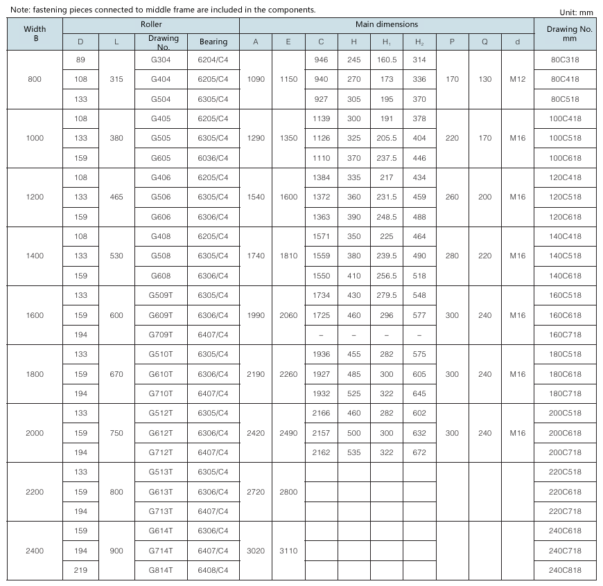 Requirement for drum surface: all are cast rubber surface. Drawing No. with “Y” as postfix refers to right-direction herringbone, with “Z” as postfix refers to left-direction herringbone, with “YZ” as postfix refers to diamond shape (omissible).