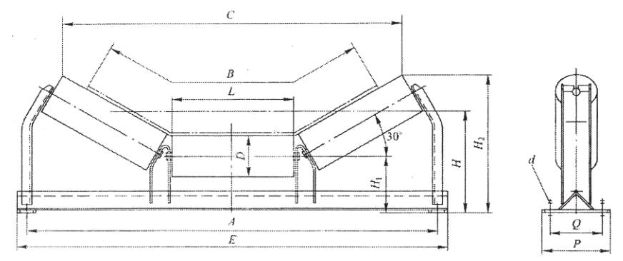 3.8 10°, ±5°transition idler with adjustable trough angle